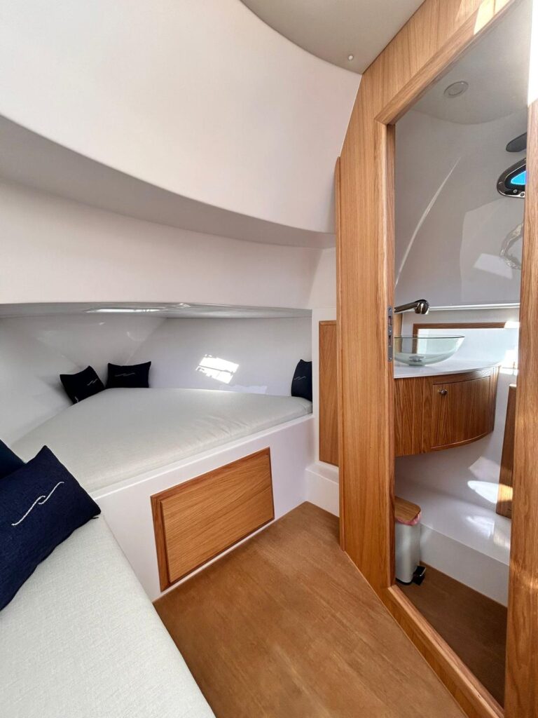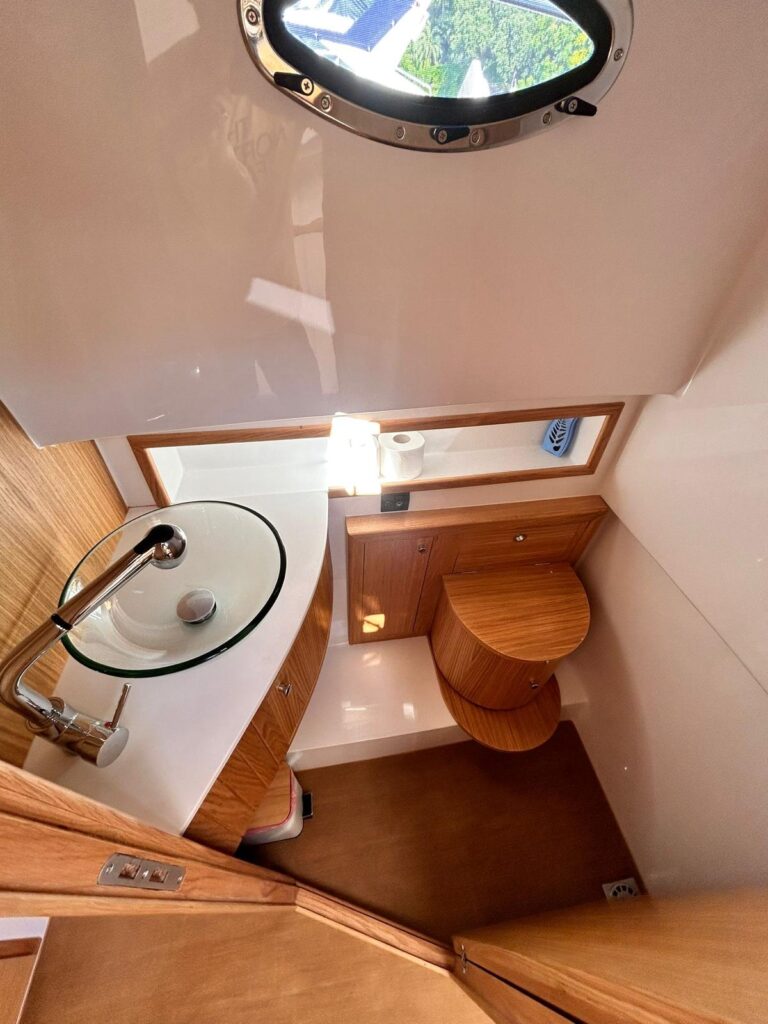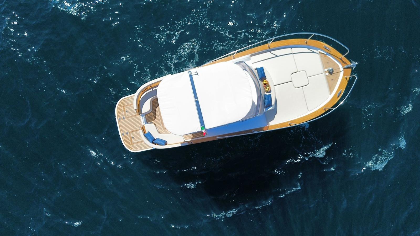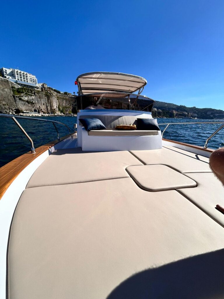 Let’s get into the typical kind of “Sorrentino’s gozzo boat”.Made in 2022, this Gozzo Viveur 28ft is simply unique and extremely beautiful inside and outside. Being a “gozzo”, its main function is not to speed, but being overwhelmed by the sound of the waves. The Gozzo Viveur 28 is created with elegant and comfort design, giving to the customers the beauty of enjoy every single moment of their trip. It features a classic southern Italian charm with its wooden hull, distinctive deck and its high strong material, such as the fiberglass.