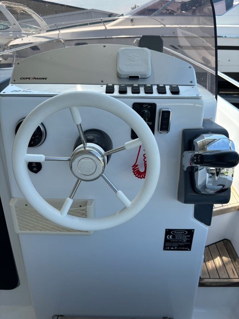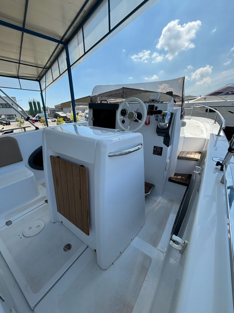 Giupex 22 is a modern and versatile motorboat that has been created for sailing around Amalfi coast and Capri. The comfortable space in the bow allows to stretch out completely and enjoy the view. It features an elegant design and a fabulous turquoise color that fit the bill with the blue of our Mediterranean Sea. Giupex 22 includes also cabin with toilet and a small bed. The boat has been constructed on January 2024 with high materials that allow to make it stable in the choppy water too.